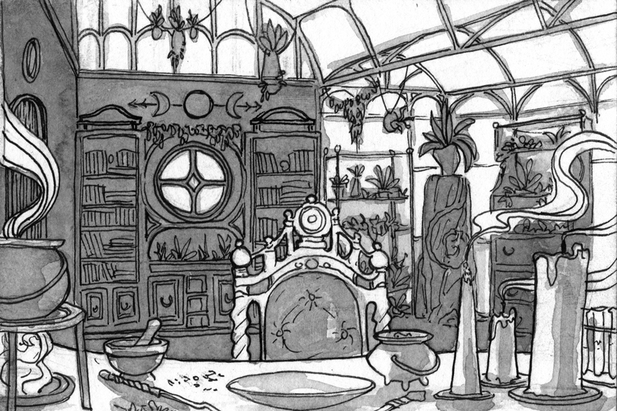 A witch's workshop. (Inktober 2016 from a list of witchy prompts)