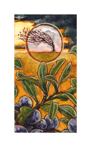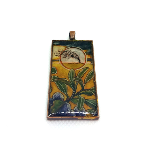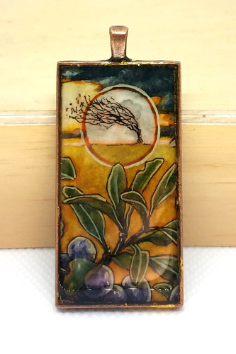 Approx. 1" x 2" pendant with original miniature watercolor painting, sealed with resin.